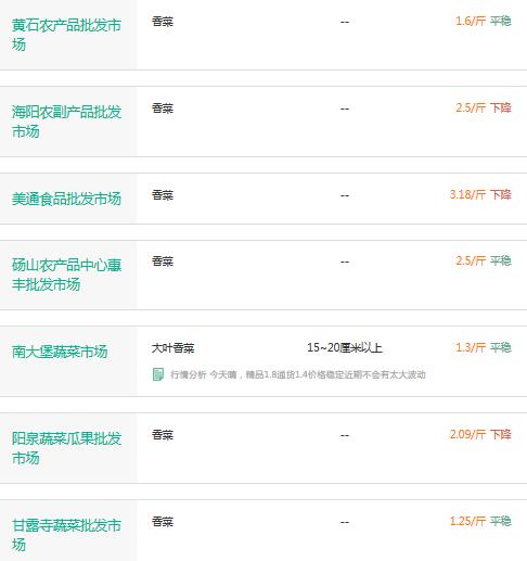 2017年1月11日香菜价格行情