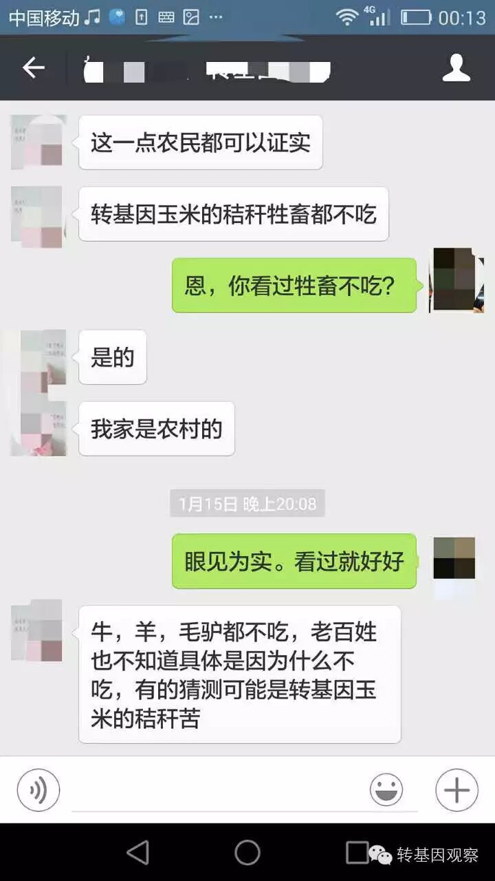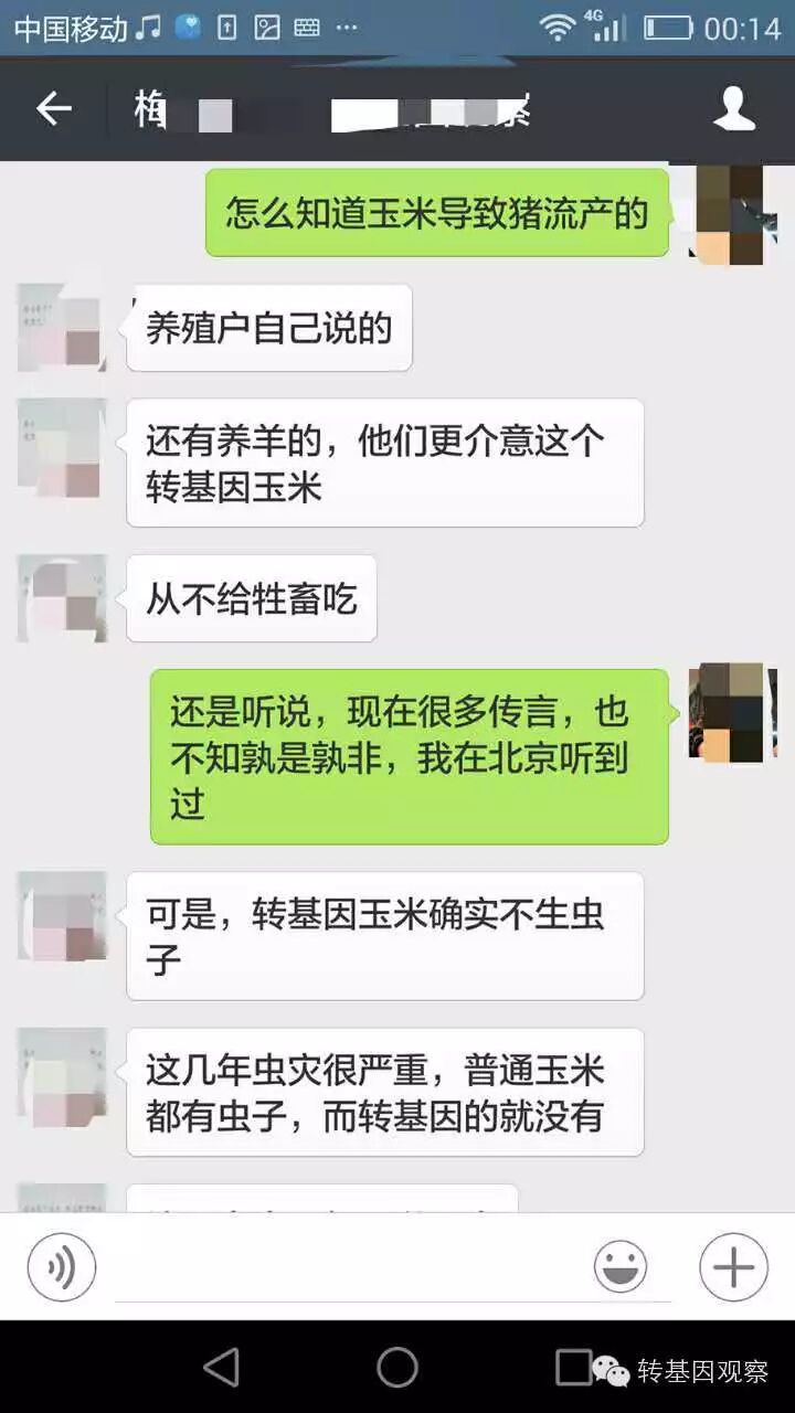 『转基因观察』为谨慎起见,与留言农民进行了沟通,农民称,这些现象自从当地种植了抗虫类的玉米之后,虽然他们不知道是不是转基因玉米,但是这些现象早就存在,所以农民不吃这种玉米,养殖户都知道玉米造成流产现象。
