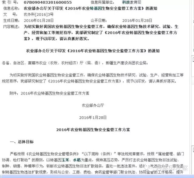 我再把这个农业部这些年发的要严打非法转基因的文件部分收集如下。