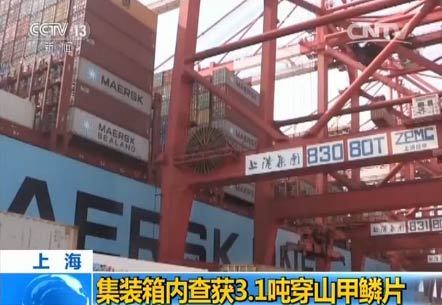 上海海关查获3.1吨穿山甲鳞片